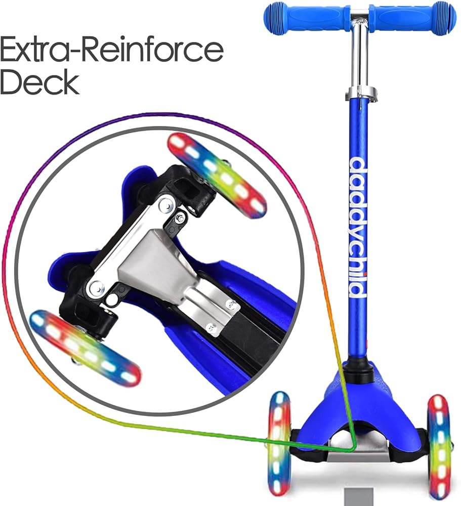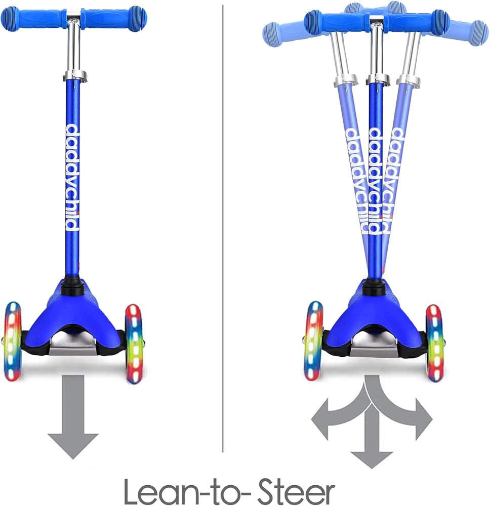 AWESOME LED LIGHTS – DaddyChild printed scooters come with our unique, eye catching LED lighted wheels. Just simply start riding to activate. With 120mm PU flashing wheels, it's wear-resistant and anti-slip contributes to smooth noiseless gliding. The wheels can adapt to various pavement such as the pebbles grass, concrete, wooden floor and on the carpet.