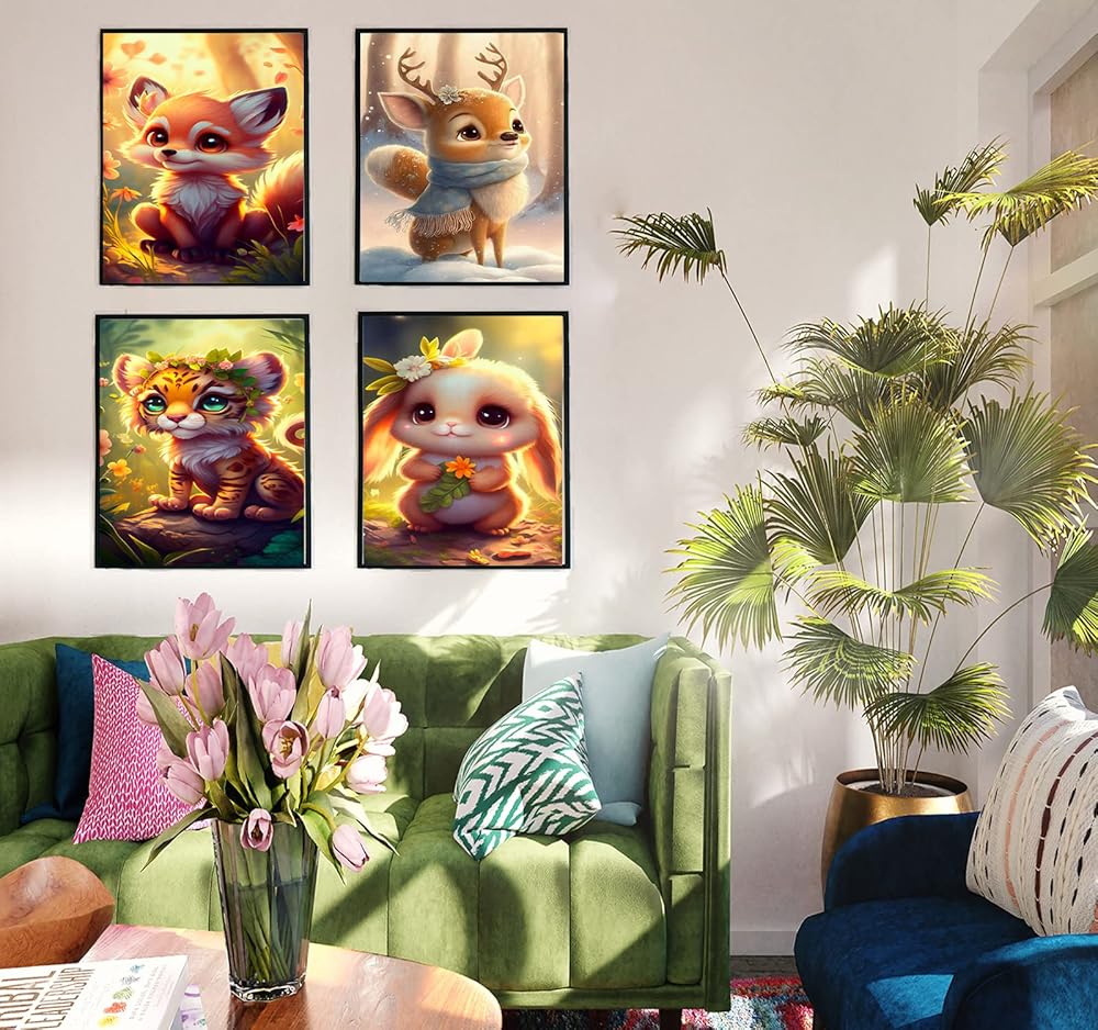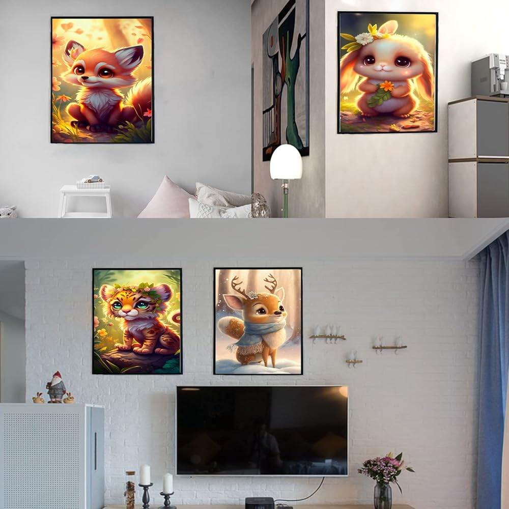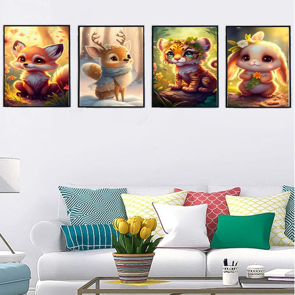 Liccyy New 4 Pack 5D Diamond Art Painting Kits for Adults Teens Beginners with All Tools, DIY Full Drill Crystal Art Paints by Numbers for Home Wall Decor Gift, Animal (12x16 in/Round Gems)