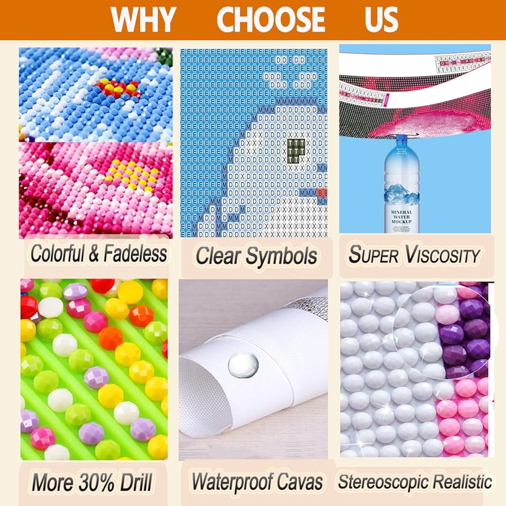 【More 30% Diamonds & Good Quality Canvas】Liccyy 5D diamond paintings offer extra 30% diamonds for each color to ensure enough beads to complete your picture. The canvas is made of high-density oil canvas, which is thickened, not easily deformed, clear symbols, waterproof, non fading, strong stickiness, and not drop diamonds.