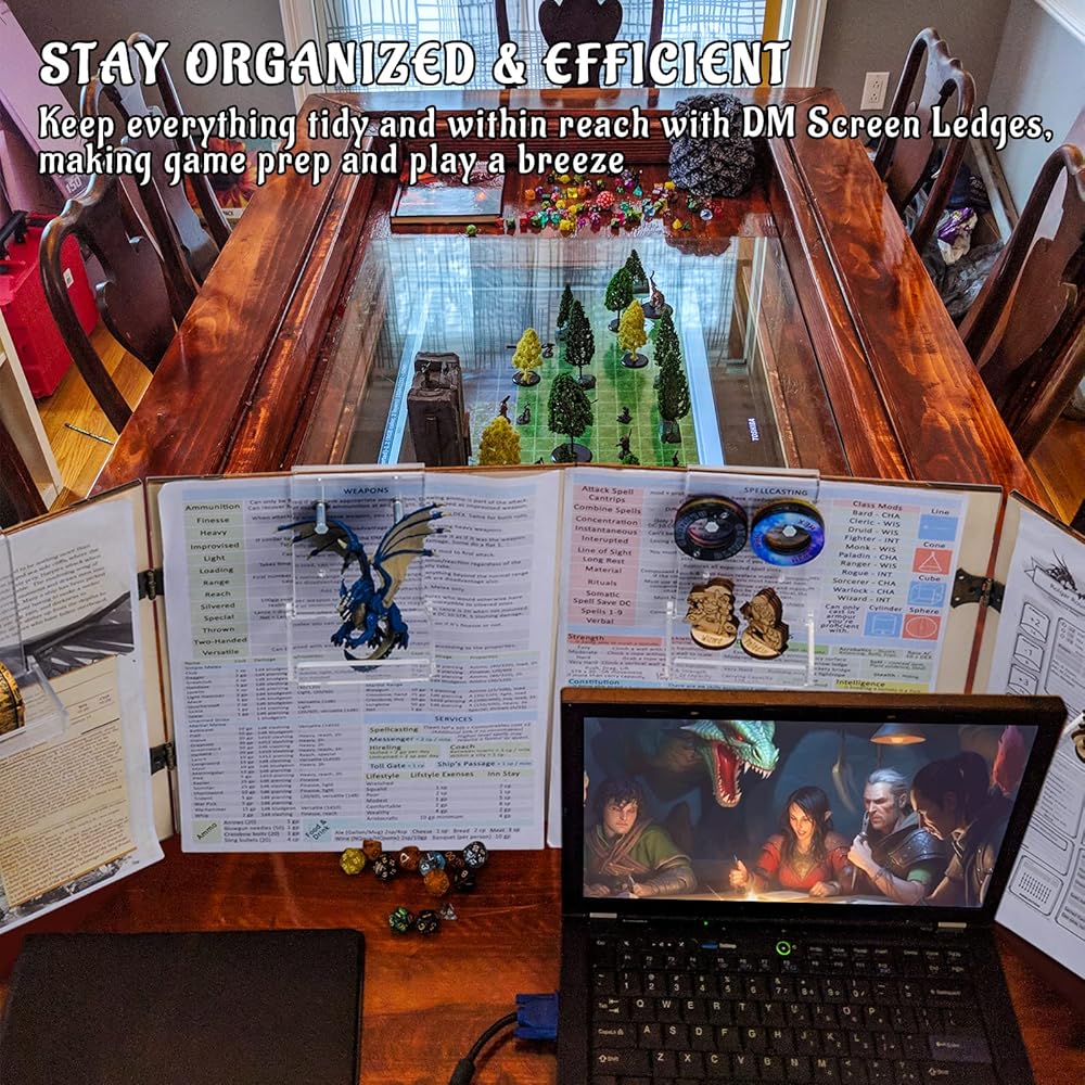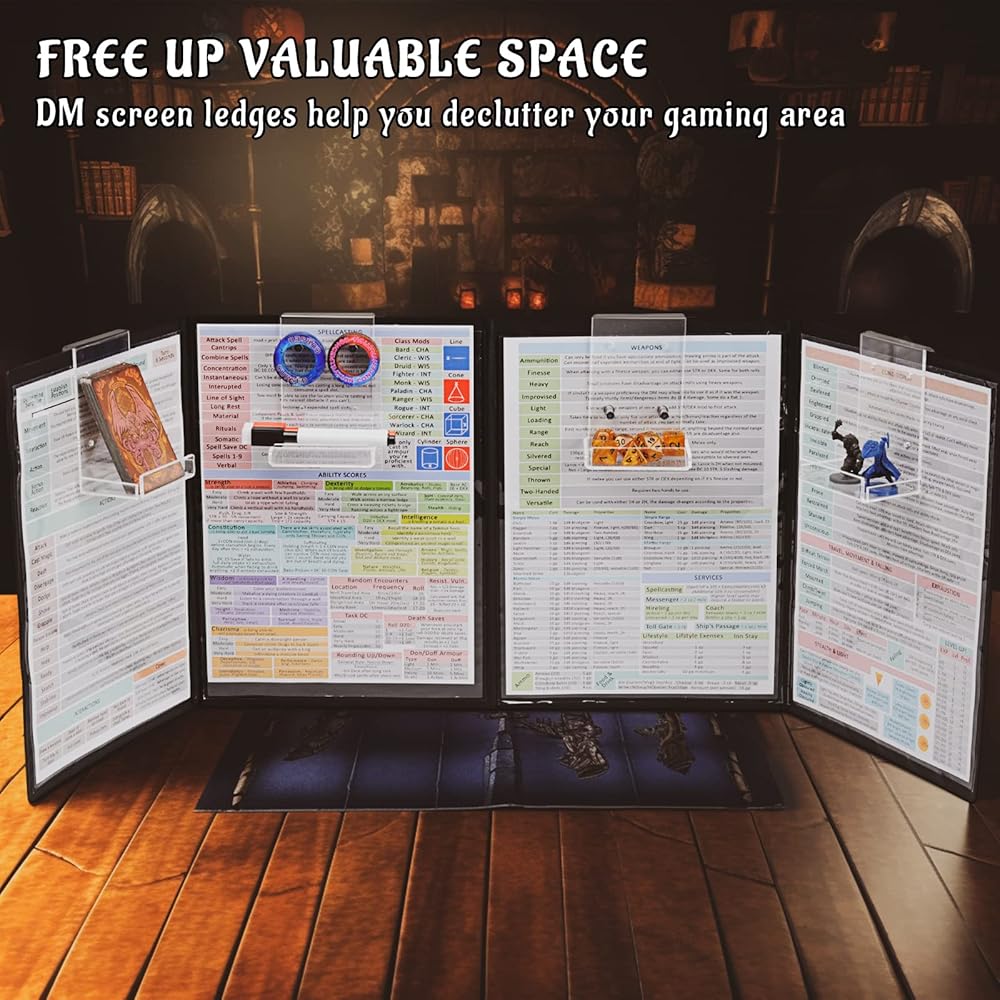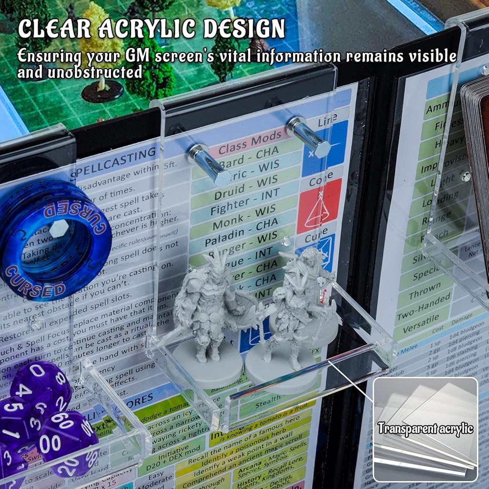 These Ledges are easy to hang on any DM screen, and their clear design provides a clean and modern look that won't obscure the information on your GM screen. Make prep time a breeze and take your game to the next level with DM Screen Ledges - the perfect gift for any Dungeon Master who wants to create an organized and streamlined gaming experience.