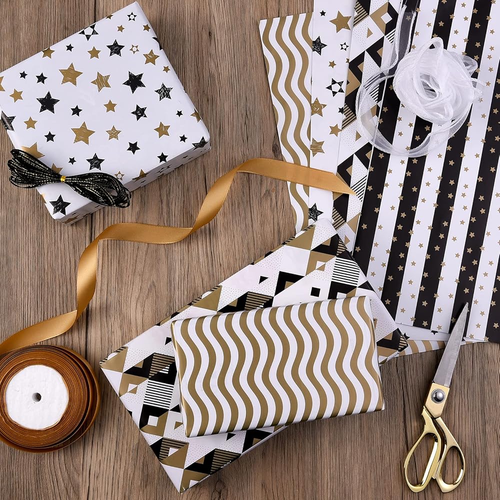 Navy Geometric Design: Our Kraft Wrapping Paper features 4 different designs, with each side showcasing a unique pattern. That means you get a total of 4 design options to choose from. Make your gifts stand out with our versatile wrapping paper.