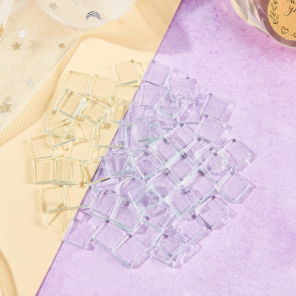 - Easy to glue these crystal clear mosaic tiles onto the surfaces of the project you want to decorate.