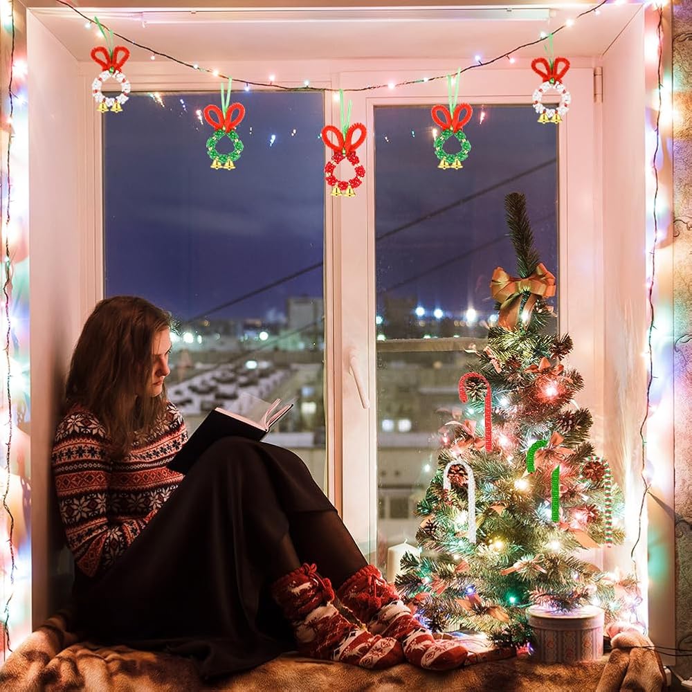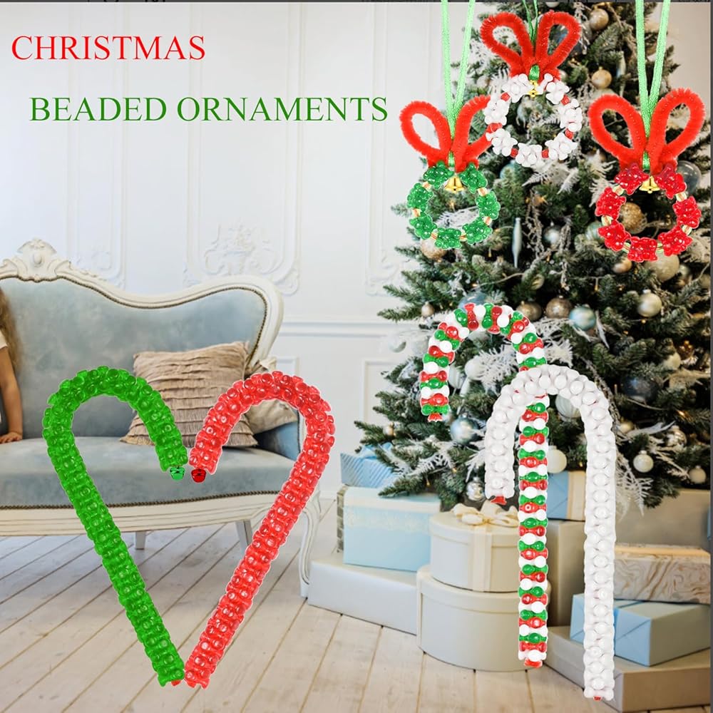 DURABLE MATERIALS: Tri beads and round beads are made of high-quality plastic. The chenille stem is made of metal and plush, and the Christmas satin is made of polyester. Tri beads come in three colors including white, green, and red. Its color is very similar to the Christmas theme which can create a Christmas atmosphere and you can have a good Christmas