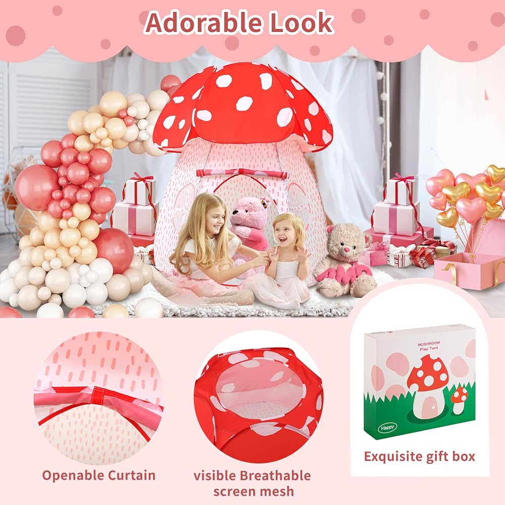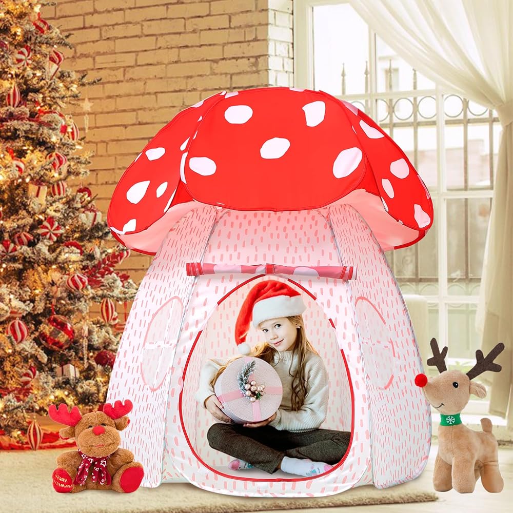 Play Tent for Kids Pop Up Tent Indoor Outdoor Boys and Girls Playhouse with Exquisite Design for Imaginative Mushroom Tent by CRAWLBO Patent Pending(RED/Large)
