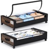 Yecaye Under Bed Storage with Wheels, 2 Pack Under Bed Storage Containers, 60L Under Bed Shoe Storage with Clear Window & Label, Rolling Under Bed Metal Drawer for Clothes, Shoes,Toys, Books, Blankets