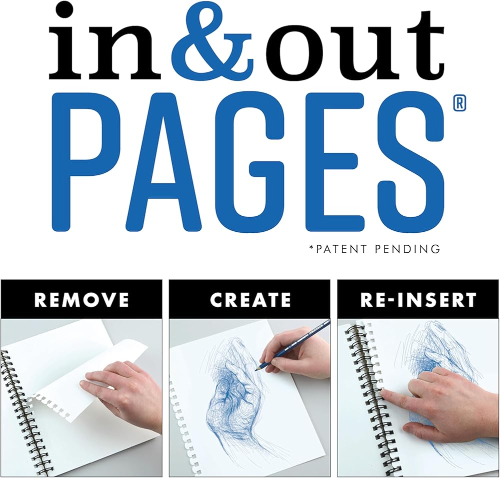 Dual loop, wire-bound construction and features “in & out” pages (patent pending) that allow you to remove sheets from the pad for drawing, reworking, scanning, and more