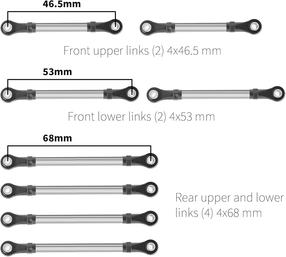 Package List:Front upper links*2, Front lower links*2, Rear upper and lower links*4.
