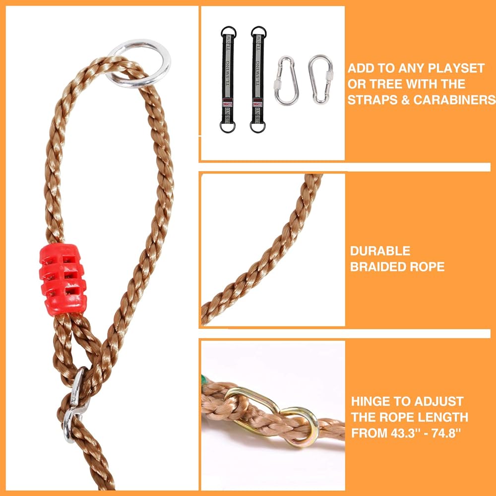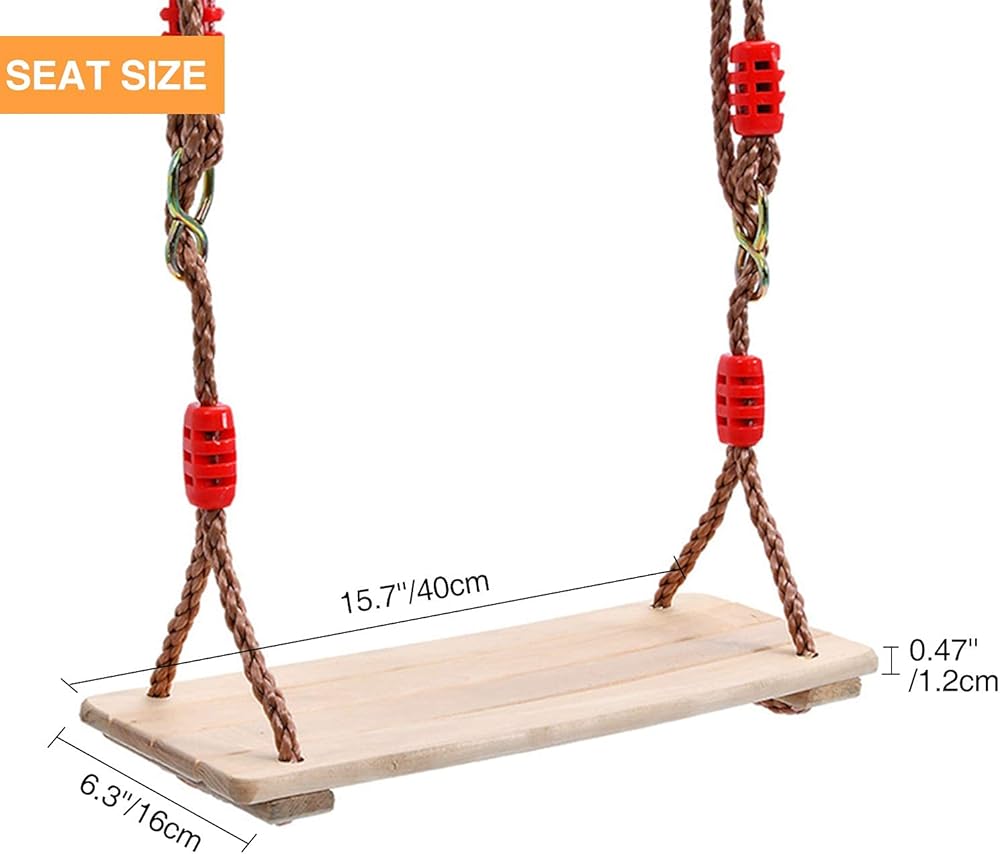 Safe-Leveling & Adjustable Rope: PE rope length from 43.3''/110cm to 74.8''/190cm. Soft rope ensures a smooth, and pinch-free grip for your children. Seat dimension 15.7''x6.3''x0.47''/40cmx16cmx1.2cm