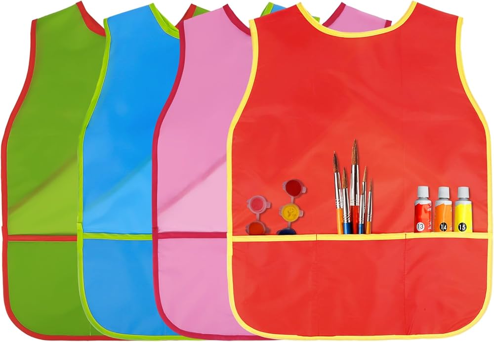 Guiqulai 4 Pcs Art Smock for Kids Waterproof Artist Painting Aprons Toddler Art Smock Sleeveless Children Painting Smock Kids Art Aprons with 3 Pocket for Age 3-8 Years, 4 Colors