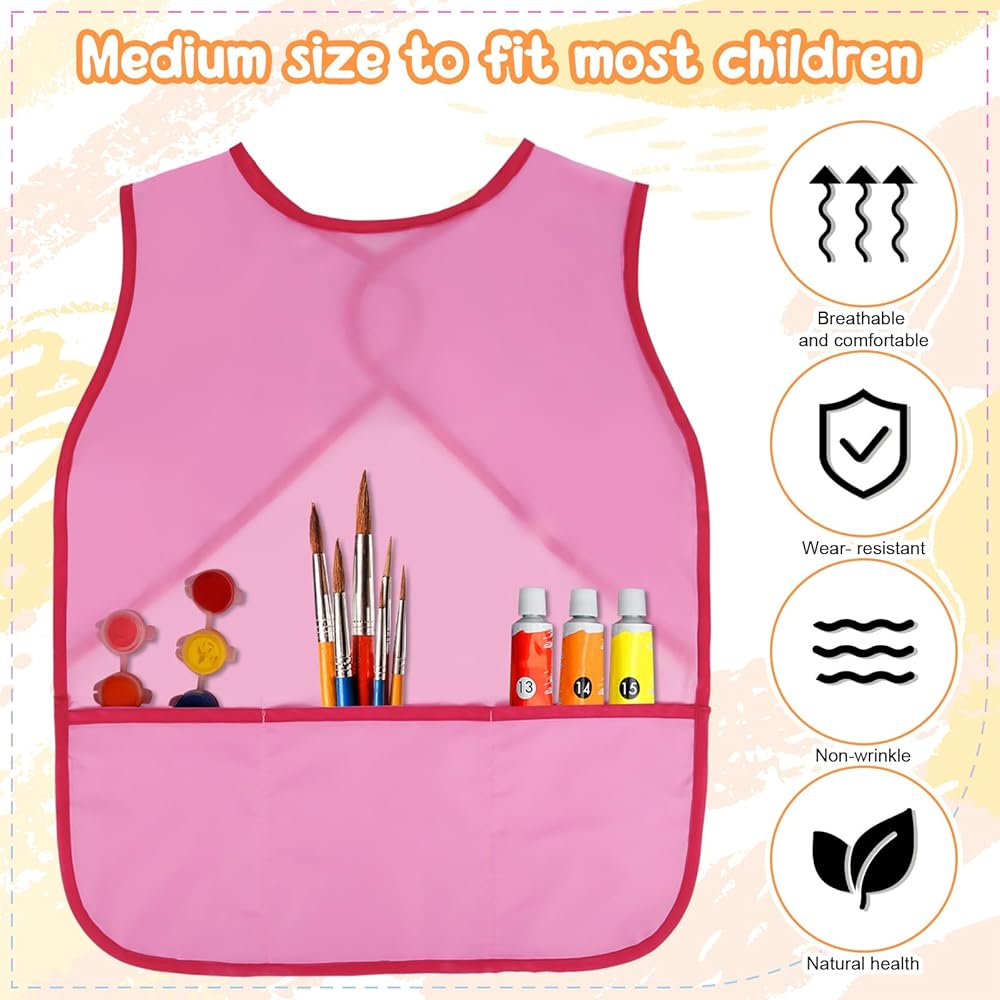 【Spacious pockets and sleeveless design】The waterproof smock is designed with 3 roomy pockets for easy storage of brushes and paints, bringing more convenience for painting; and the painting apron is equipped with a sticky fastener closure on the back, making it easy for children to put on and take off, and the sleeveless design is comfortable to wear, letting children paint at will.