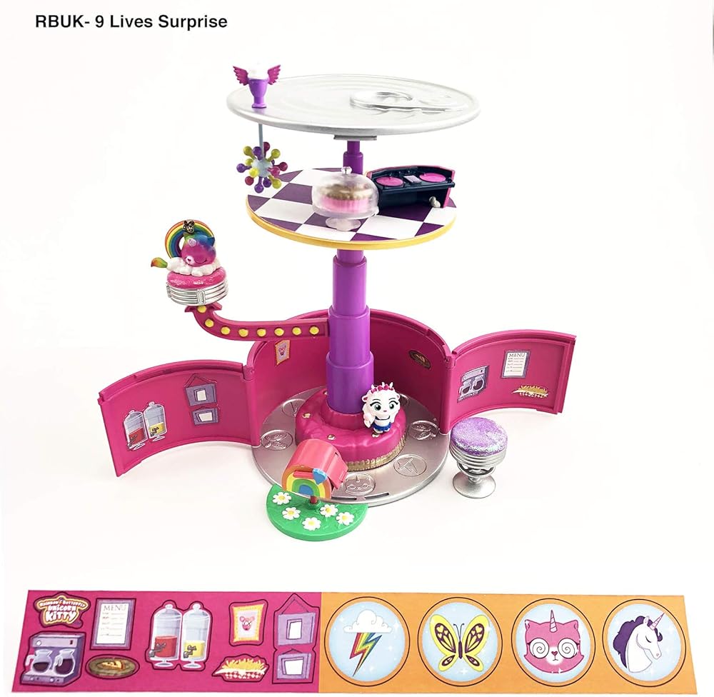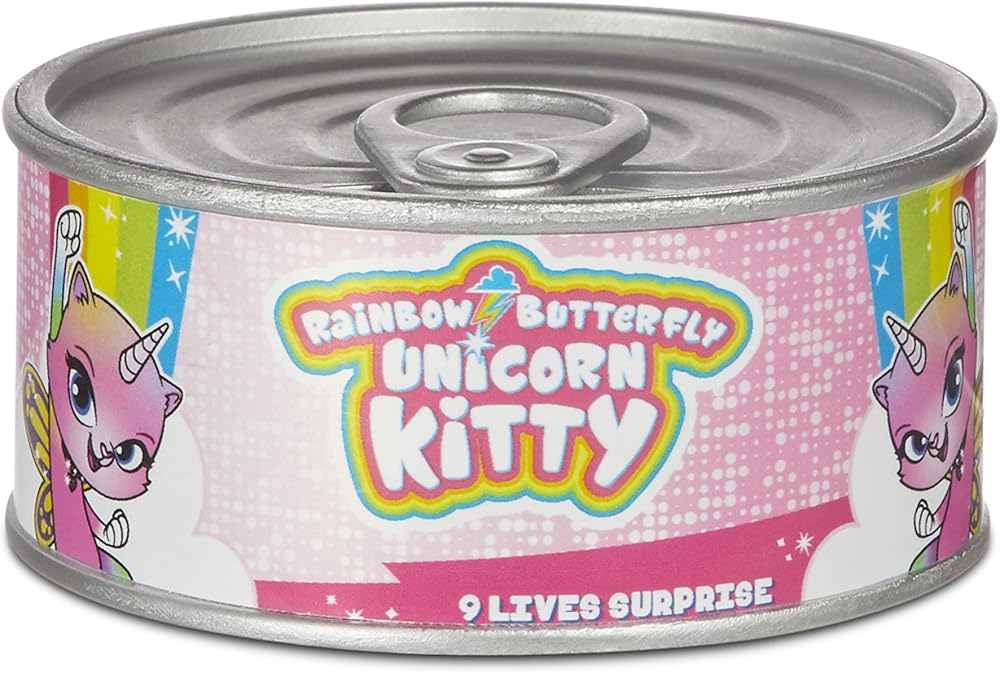 There's plenty of unboxing fun with the all-new Rainbow Butterfly Unicorn Kitty 9 lives surprise. Just twist the lid to pop open and transform each Kitty can into a multi-level mini-playset. In each 9 lives surprise, you'll discover 9 positively awesome surprises including two collectible mini-figures, 6 adorable collectible accessories and a decorative sticker pack. With over 55 pieces to collect, you can design, style and customize each mini-playset to be perfectly yours. (*5 styles to collect, each sold separately and items may vary). patented design. For ages 4+