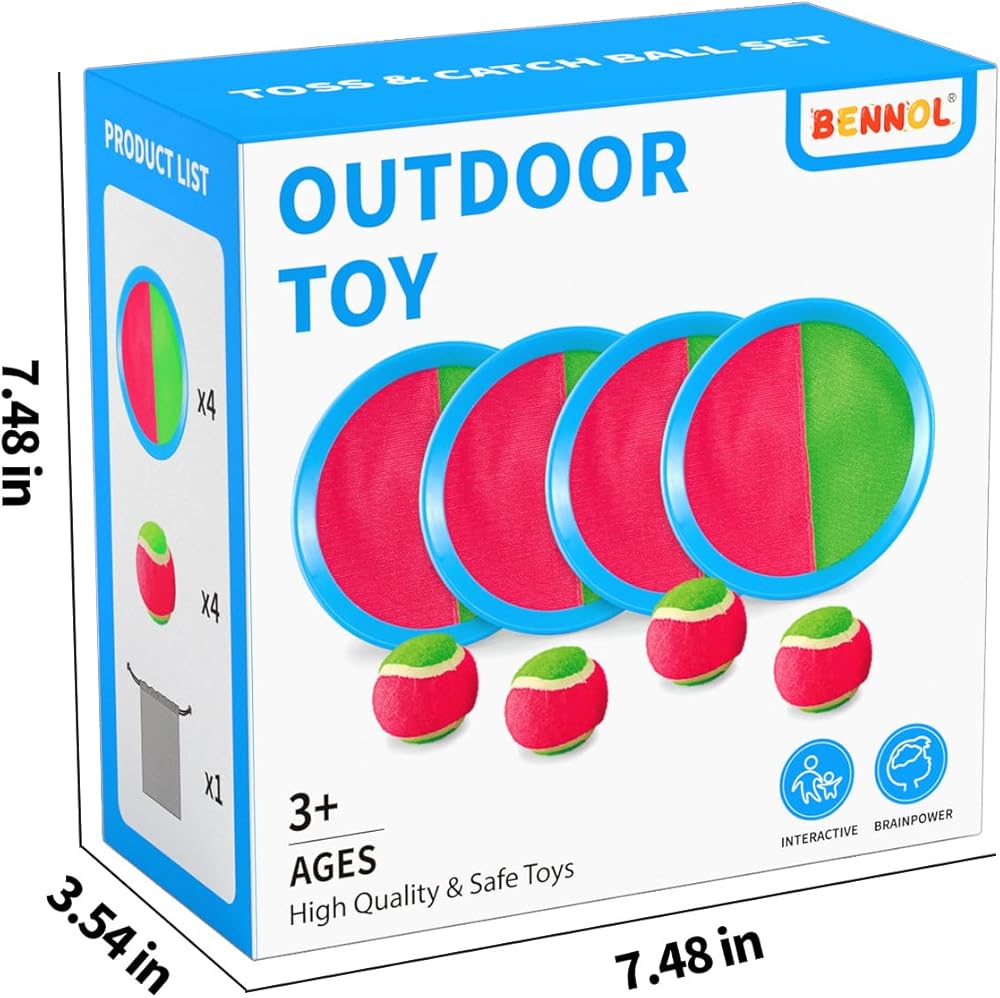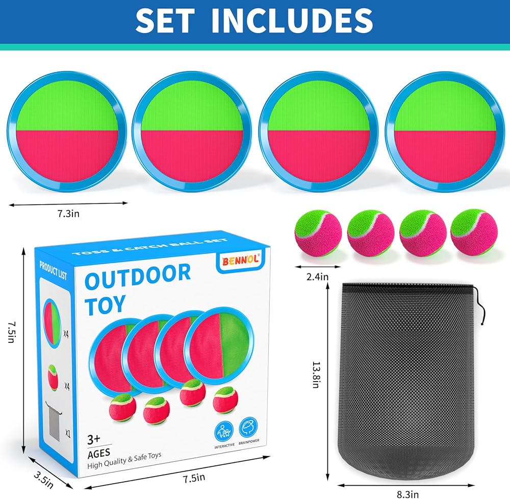 【Suitable For All Ages】This toss-and-catch outdoor games set is made with waterproof padding and stronger stitching for durability. The volcro on the paddle is sticky enough, which allows players to catch the ball easily. The catch discs stay securely attached to hands with the back strap making it easy even for kids to have hours of fun catching the fuzzy ball on the surface.