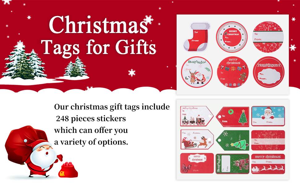 Size: These christmas tags are measured 32 sheets 5.12 x 7.48 inch in total 248 pieces for your choice. Gift tag stickers are great for weddings, holiday, birthdays, Christmas and festival party which is a good choice for christmas tags for gifts.
