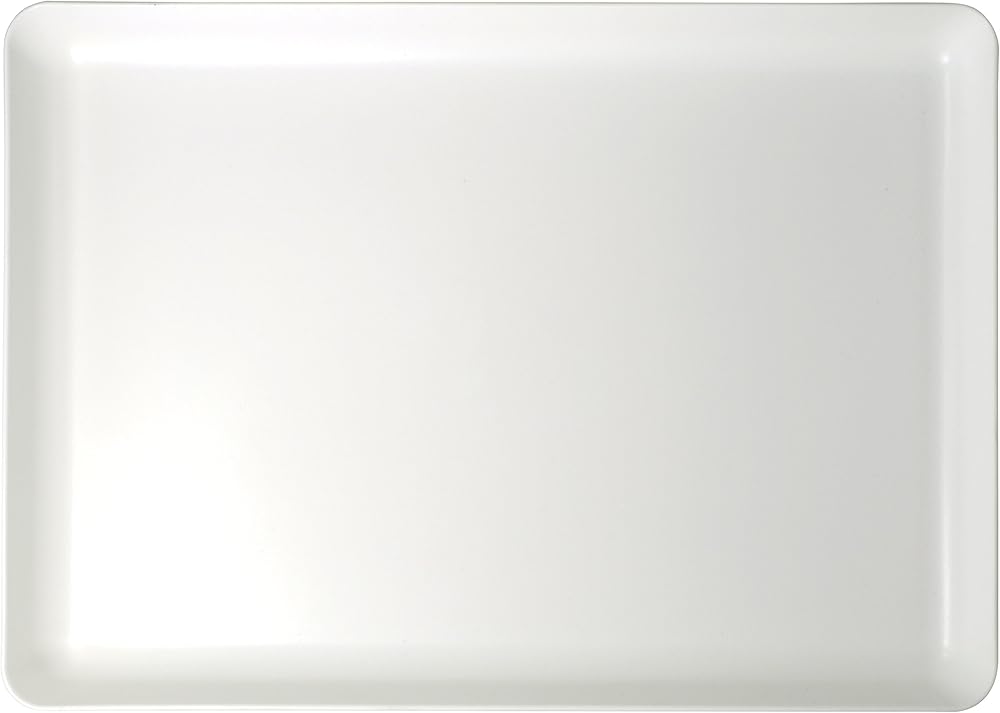 Sturdy, shatter resistant, white plastic butcher tray.