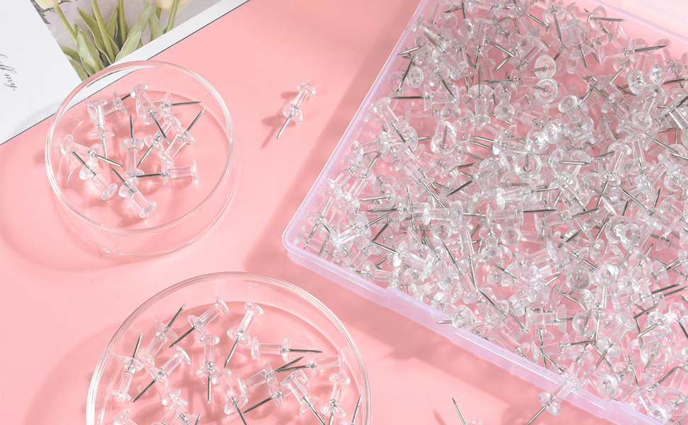 400 Piece Push Pins Tacks for Bulletin Board,Clear Thumb Tacks, Plastic Head and Steel Point, Thumbtacks, Standard Push Tacks for Home Office School Organization