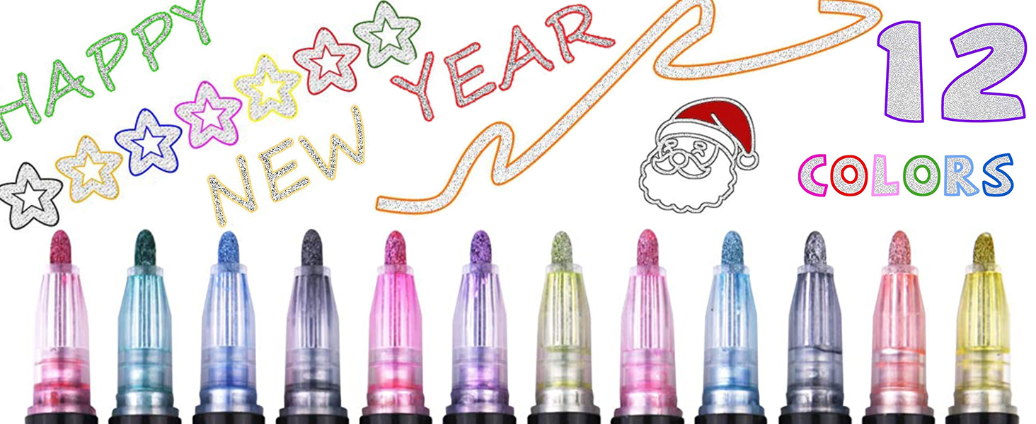 Glitter markers suitable for DIY craft writing, Greeting Card , Drawing, Painting, Scrapbook Supplies, Art Crafts, Photo Album, and highlighting etc; with a wear-resistant and pressure-resistant chisel tip, helps to achieve write almost any surface, such as metal, pottery, wood, rubber, glass, plastic, stone, etc
