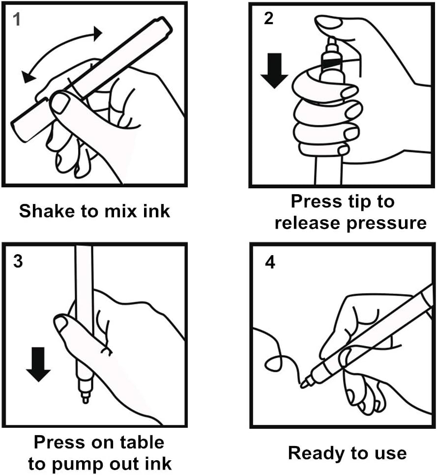 Easy to use, shake the marker well to mix the ink with the tip on and then take off the cap and gently press down the tip on the surface a few times to pump the ink until it starts to flow; for best protection, re-cap the markers immediately after use and store horizontally