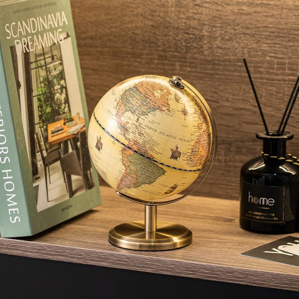 XINXUAN Globes of The World With Stand Mini Antique Globe ,Educational/Geographic/Modern Desktop Decoration ,Stainless Steel Arc And Base - Apply To for School, Home and Office