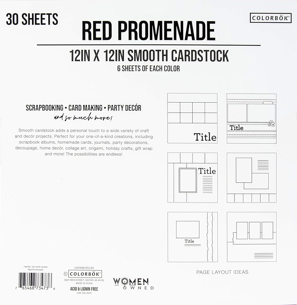 ColorBok 12 inch smooth cardstock paper pad is perfect for all your paper crafting projects. It contains 30 sheets with 6 sheets of 5 different Red Promenade colors.