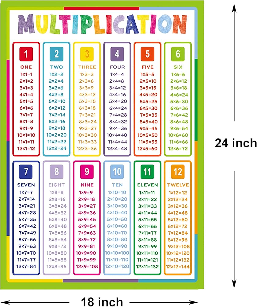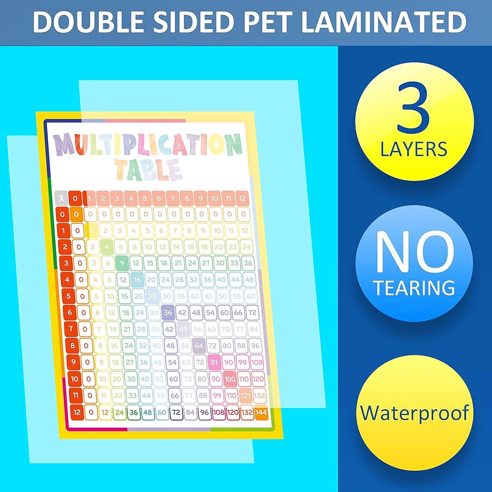 يونجيفير ملصقات تعليمية مغلفة بمخطط جدول الضرب من قطعتين مقاس 24 × 18 انش، ملصقات تعليمية، ملصقات للفصول الدراسية