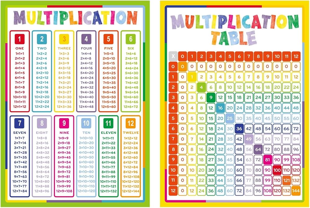 ملصقات الرياضيات - ملصقان تعليميان: ملصق الضرب وملصق مخطط جدول الضرب