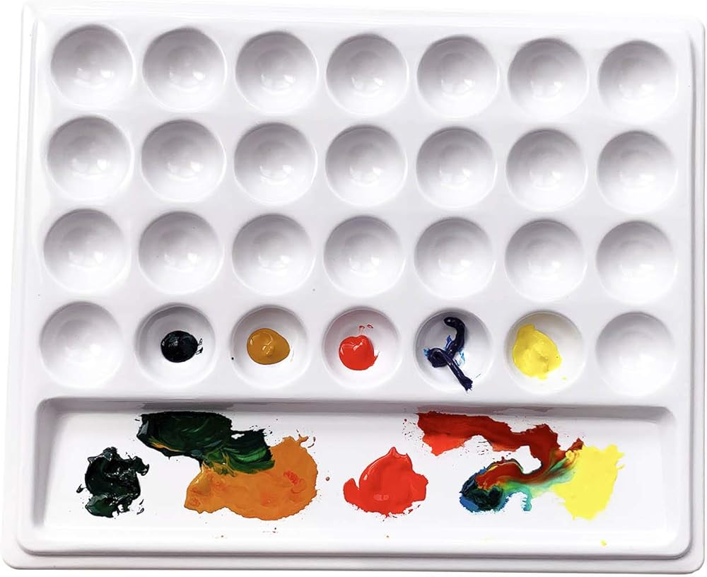 White Paint Imitation Ceramic Palettes Rectangular Watercolor Oil Palette Painting Tray Artist Craft Palettes - Various Shapes and Sizes (28-Wells)