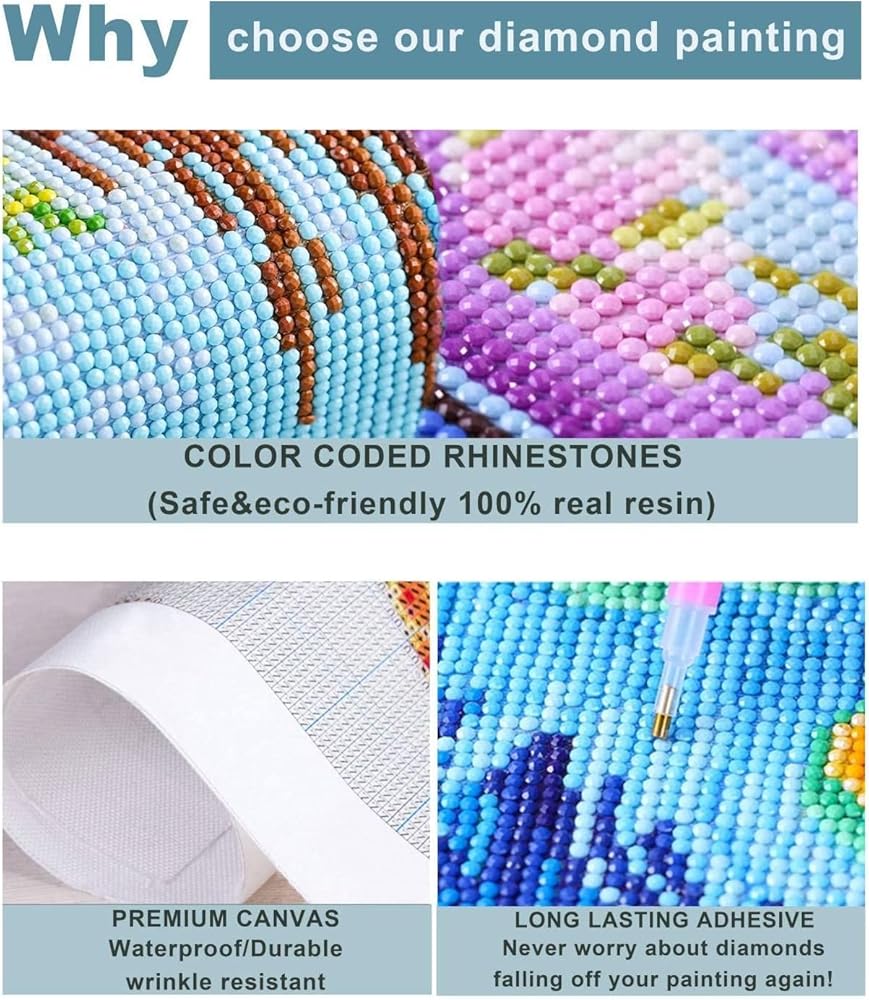 • 【Diamond Painting Kit 】 DIY diamond paintings art kits are perfect for teens and adults and it's also diamond painting kits for beginners, we suggest you try this size first then challege any larger size.