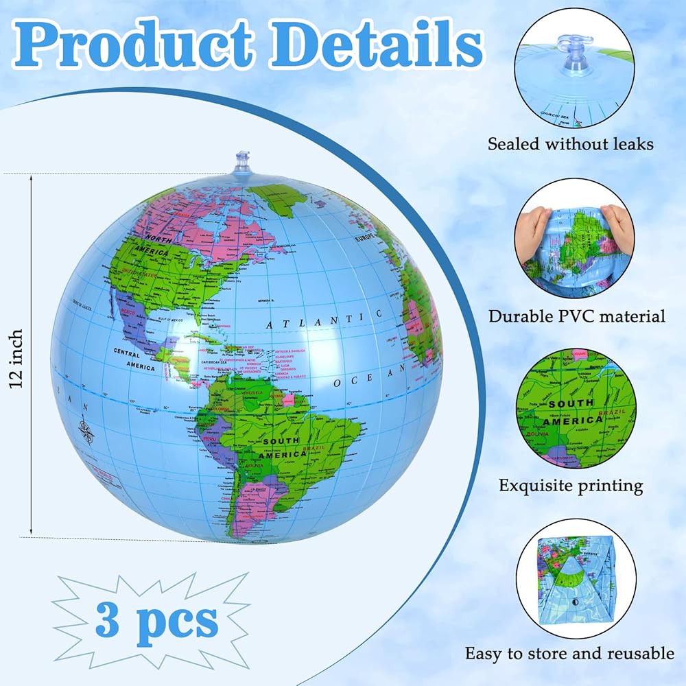 Our inflatable world globe clearly shows continents, countries, rivers, oceans on earth, easy to recognize.
