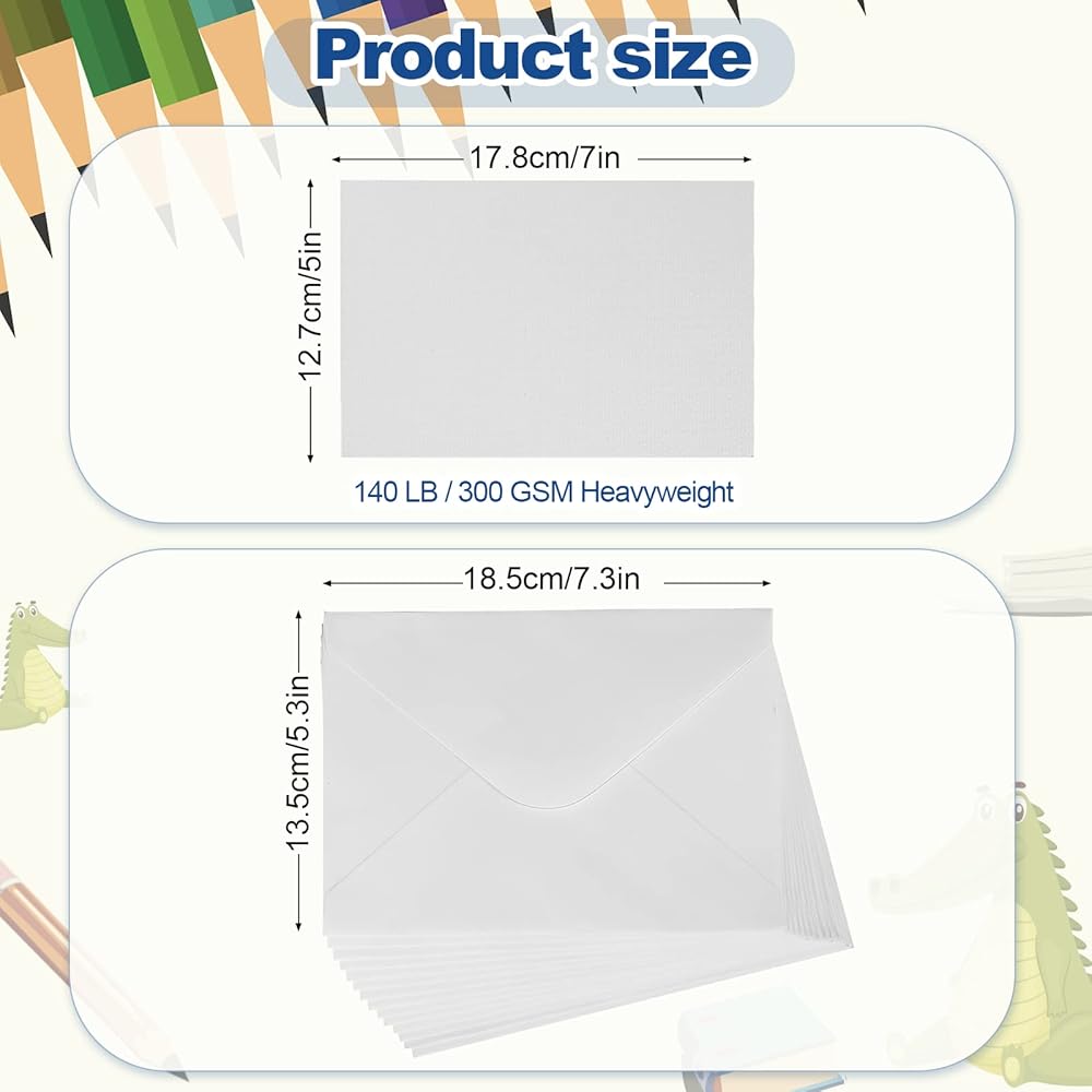 Product Size: The watercolor card size is 12.7 x 17.8 cm / 5 X 7 inch, the envelope size is 13.5 x 18.5cm / 5.3 x 7.3 inch, suitable for children, students, artists, beginners and enthusiasts. With blank design, you can make DIY creation according to your inspiration.
