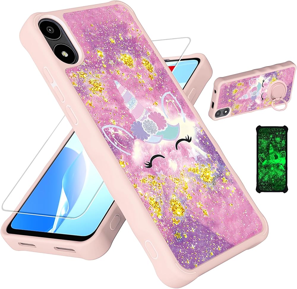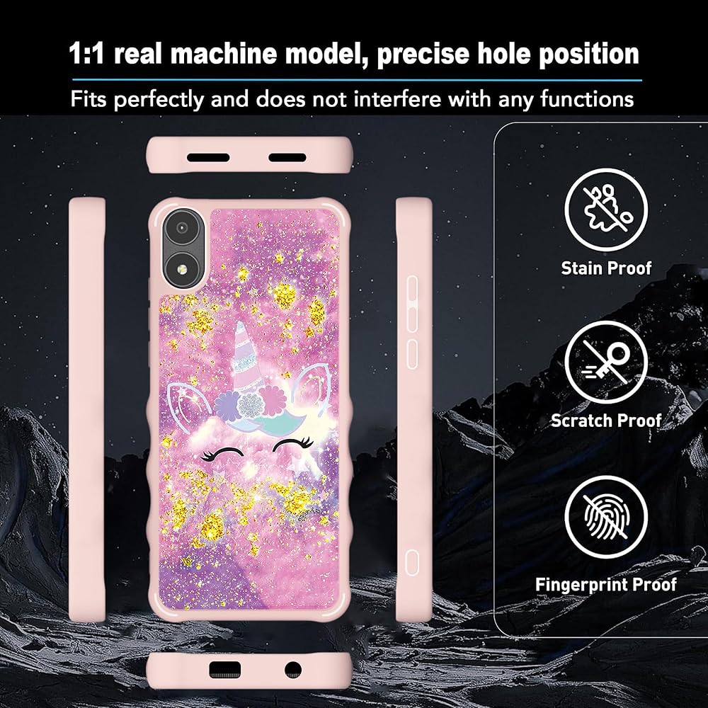 Ans Artia Case Compatible with Ans Artia ACK2326 Phone Case Cover [with Tempered Glass Screen Protector][Hard PC + Soft Silicone][Gold Glitter+Luminous] JSF-DJS