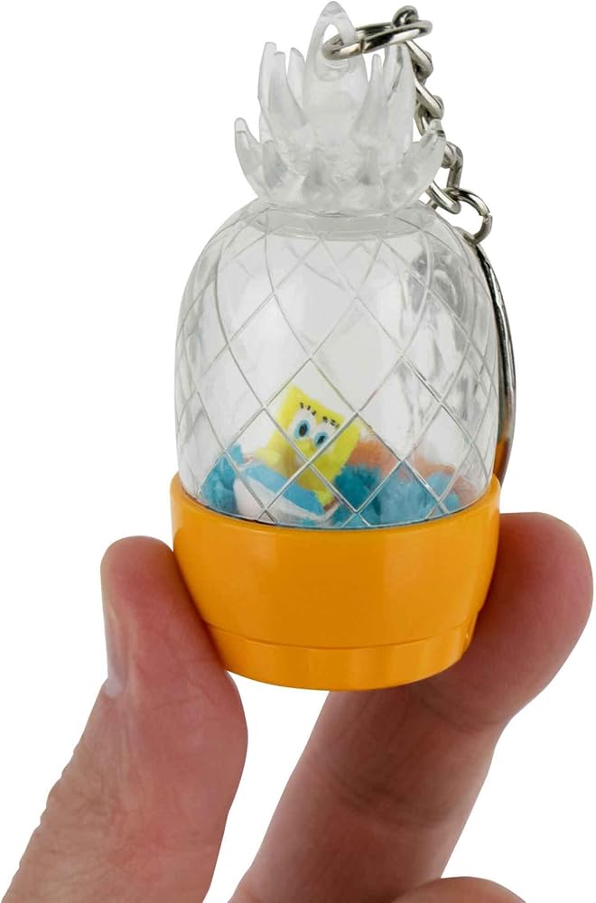 Take SpongeBob for a spin in the ocean! Turn the bottom of the pineapple keychain and SpongeBob “cruises” the waves in his boat! Features authentic blue Foam Alive as the water! Includes 1 mini SpongeBob figure, 1 pineapple, 0.05 oz. Foam Alive, and 1 keychain.