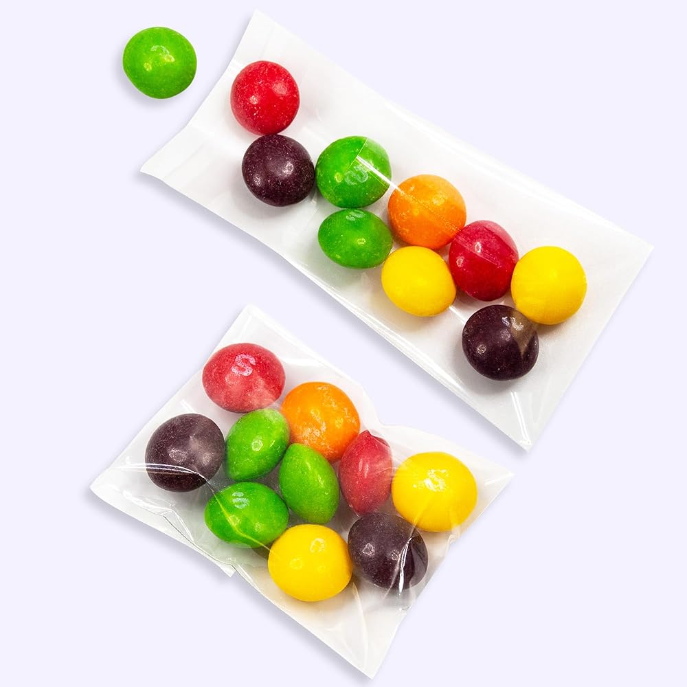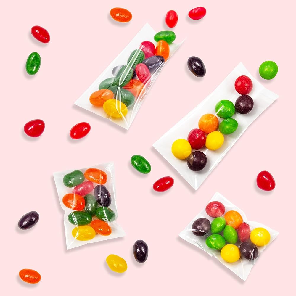 THICKER AND STRONGER: Measures 2" x 3" (not including the flap) NO Gusseted bottom, 1.4 mils (single side) thickness, crystal clear and stronger cello bags have excellent vapor blocking properties, keeping the food and treats fresh, extends the shelf life.