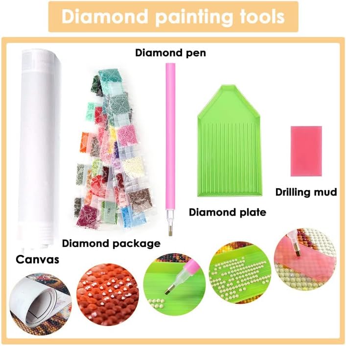 • ★ [High-quality Material] The diamond painting canvas is made of high-quality canvas, which is durable, healthy and environmentally friendly, high viscosity, and not easy to deform. The diamonds have uniform texture, smooth surface, bright color, shiny and never fade, and can be stored forever.