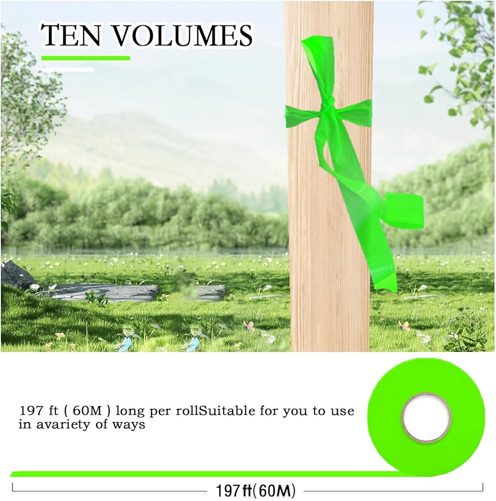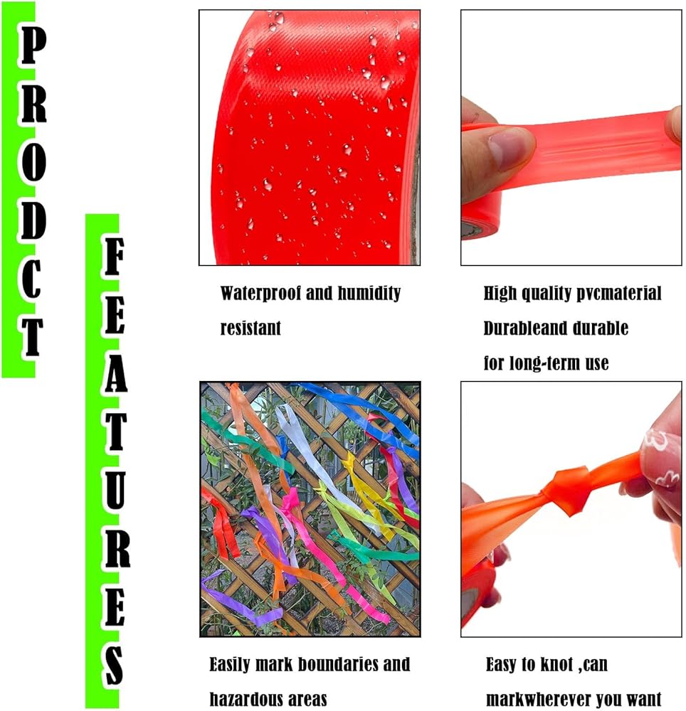 More uses: 1, while you hunting and hiking, you can mark a trail to use for a few weeks during hunting season. 2, tree flagging, you can Mark what trees and bushes u want removed in yard, you can also mark saplings, mark new plants to make them more visible while mowing grass. 3, Great substitute for streamers: as party streamers. 4, marking property lines and trails: mark an area of your lawn. 5, mark your electric fence. 6, marking your farm: lawn sprinkler, locating lawn undergroud cables or pipes. 7, Great for marking guy lines on tents, tarps, or hammocks.