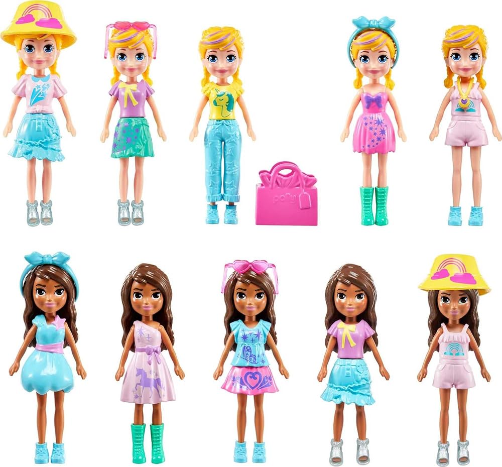 Get ready for the ultimate makeover in this Polly Pocket Glam It Up Style Studio! The playset includes 2 dolls, 19 fashions, and 3 areas of play.
