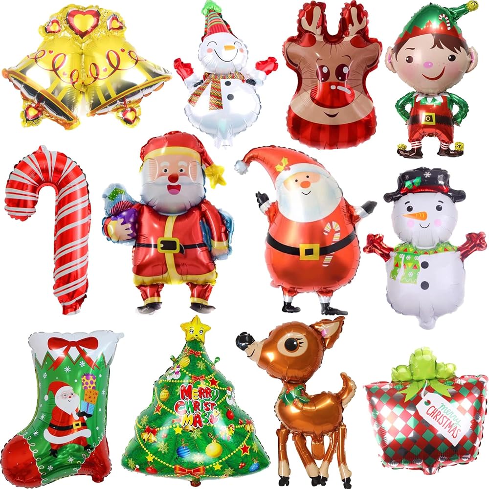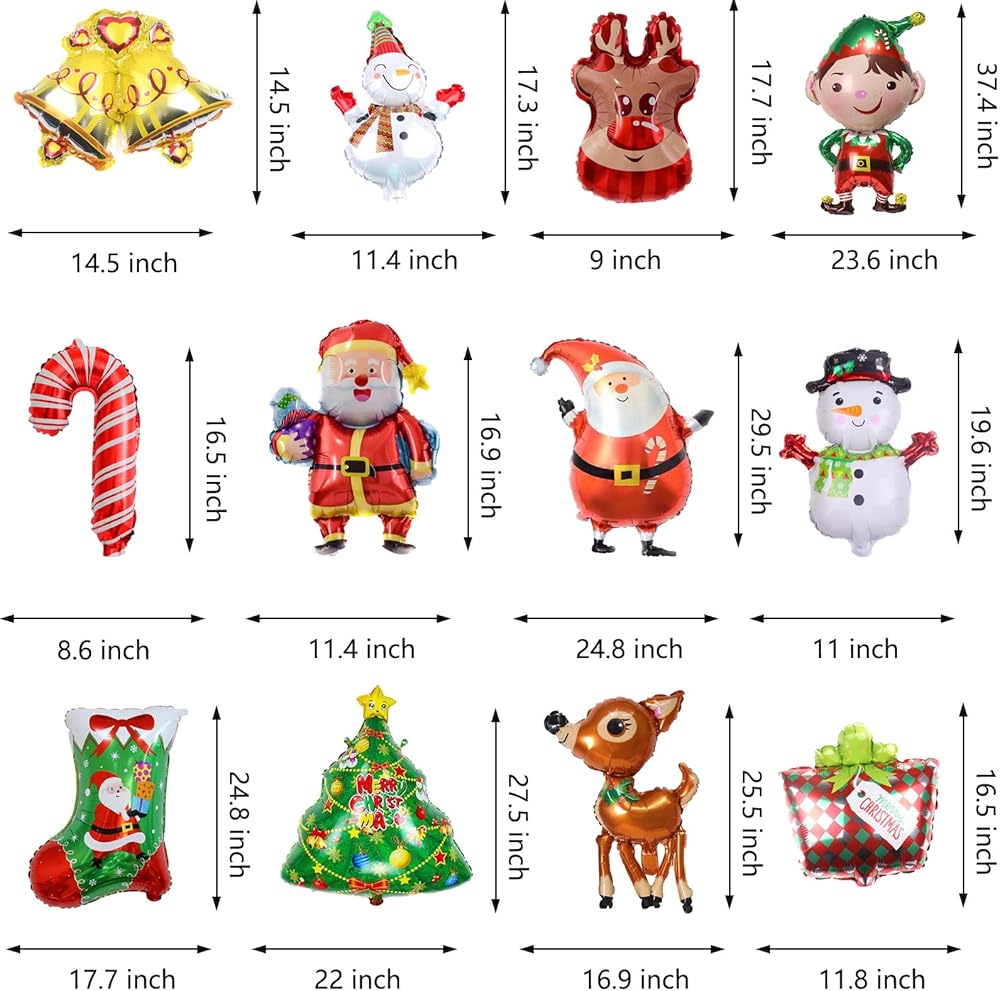 1.Packing list:You will receive 12 pieces of christmas balloons, celebrate and decorate christmas with these foil mylar balloons, is the best option for hosting christmas party.