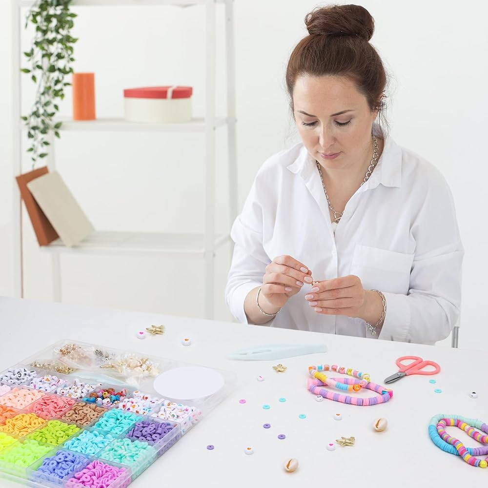 Environmentally Material: The beads in this package are crafted from polymer clay, which is an environmentally friendly material. These beads are not only lightweight and comfortable to wear but also come in vibrant colors. You can rest assured that the clay beads included in this kit are designed to resist fading, even if exposed to elements like water, such as wearing them at the beach, pool, or in the restroom