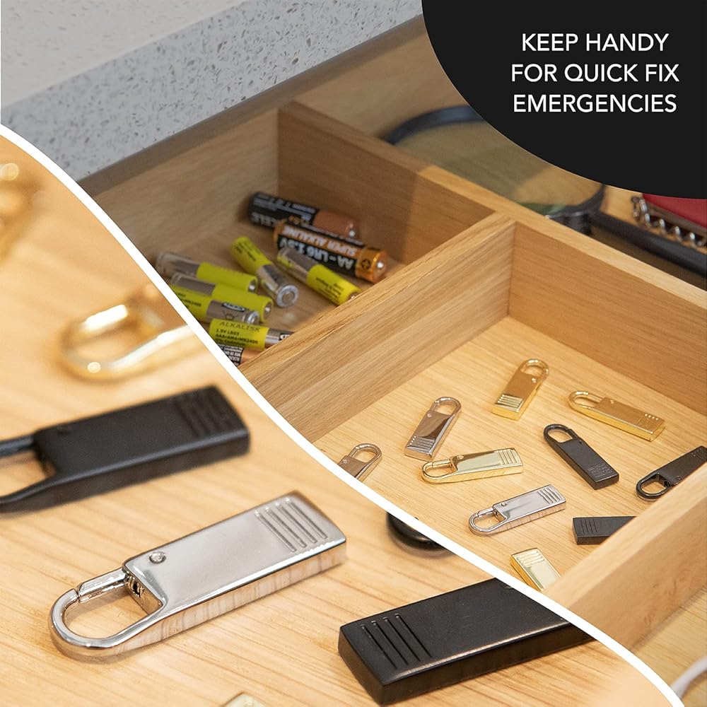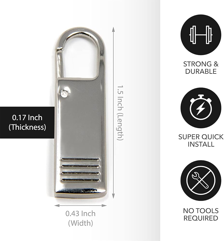 Multi-Purpose Excellence: Our metal zipper pull, part of your zipper pull repair kit, are perfect for bags, suitcases, luggage, jackets, coats, purses and more, ensuring our heavy duty zipper pull is durable and stylish.