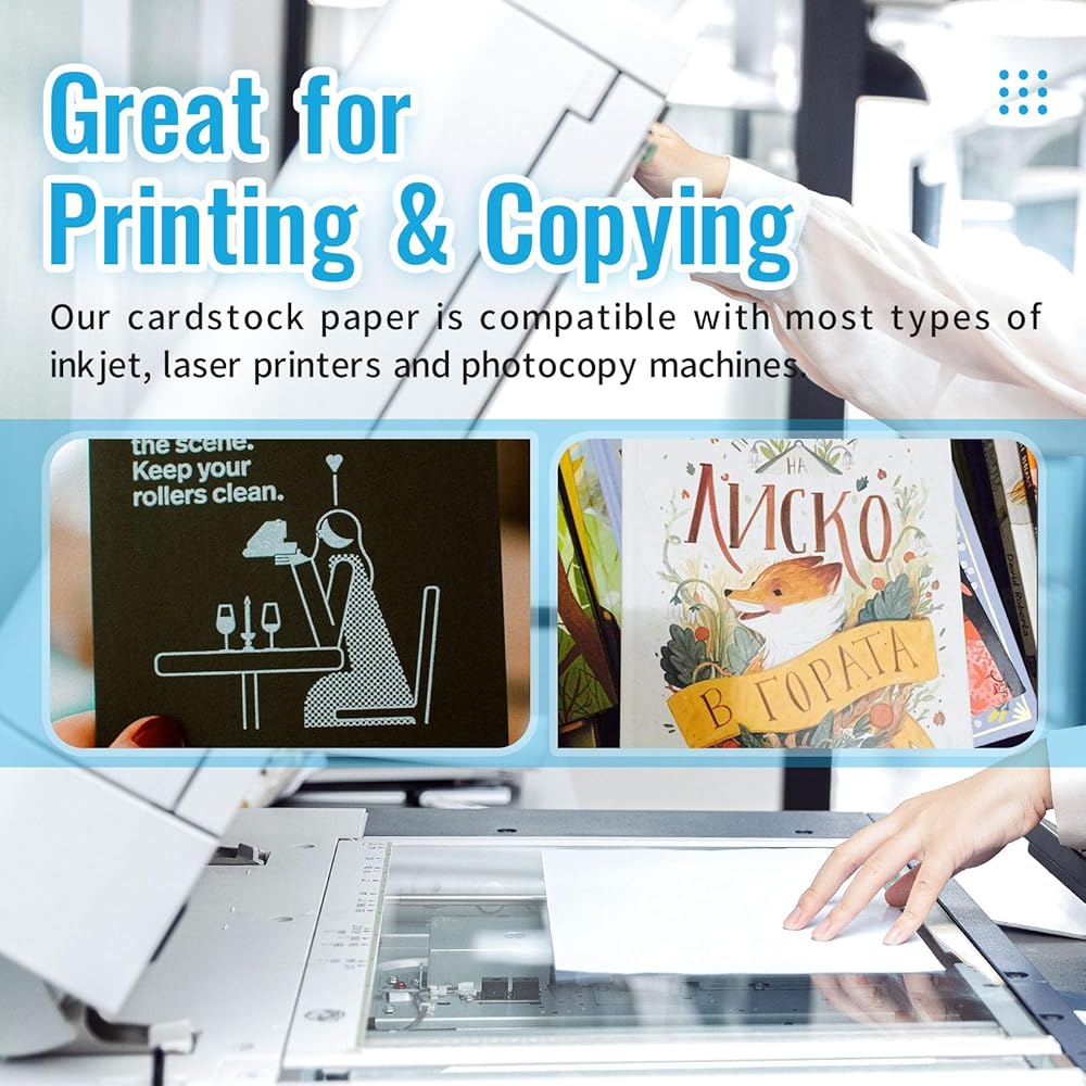 Great for Printing & Copying: Strudy and versatile, our cardstock paper is compatible with most types of inkjet, laser printers and photocopy machines. Please check the maximum thickness specification of your printer before printing. You can use it to make custom paper decorations, thank-you notes, and DIY crafts, and also perfect for kids to create their own birthday invitations or thank you notes.