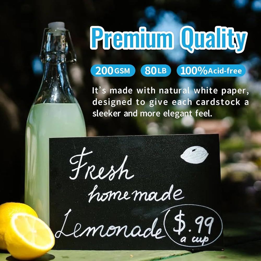 Package Include: Each package includes 100 sheets of white black mixed cardstock paper, measures 8.5 x 11 inches in size, 200 grams in weight.It's crafted to be lignin and acid-free for long-lasting results.