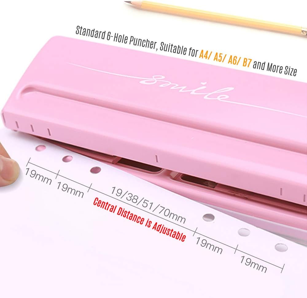 Adjustable 6-Hole Desktop Punch Puncher for A4 A5 A6 B7 Dairy Planner Organizer Six Ring Binder with 6 Sheet Capacity