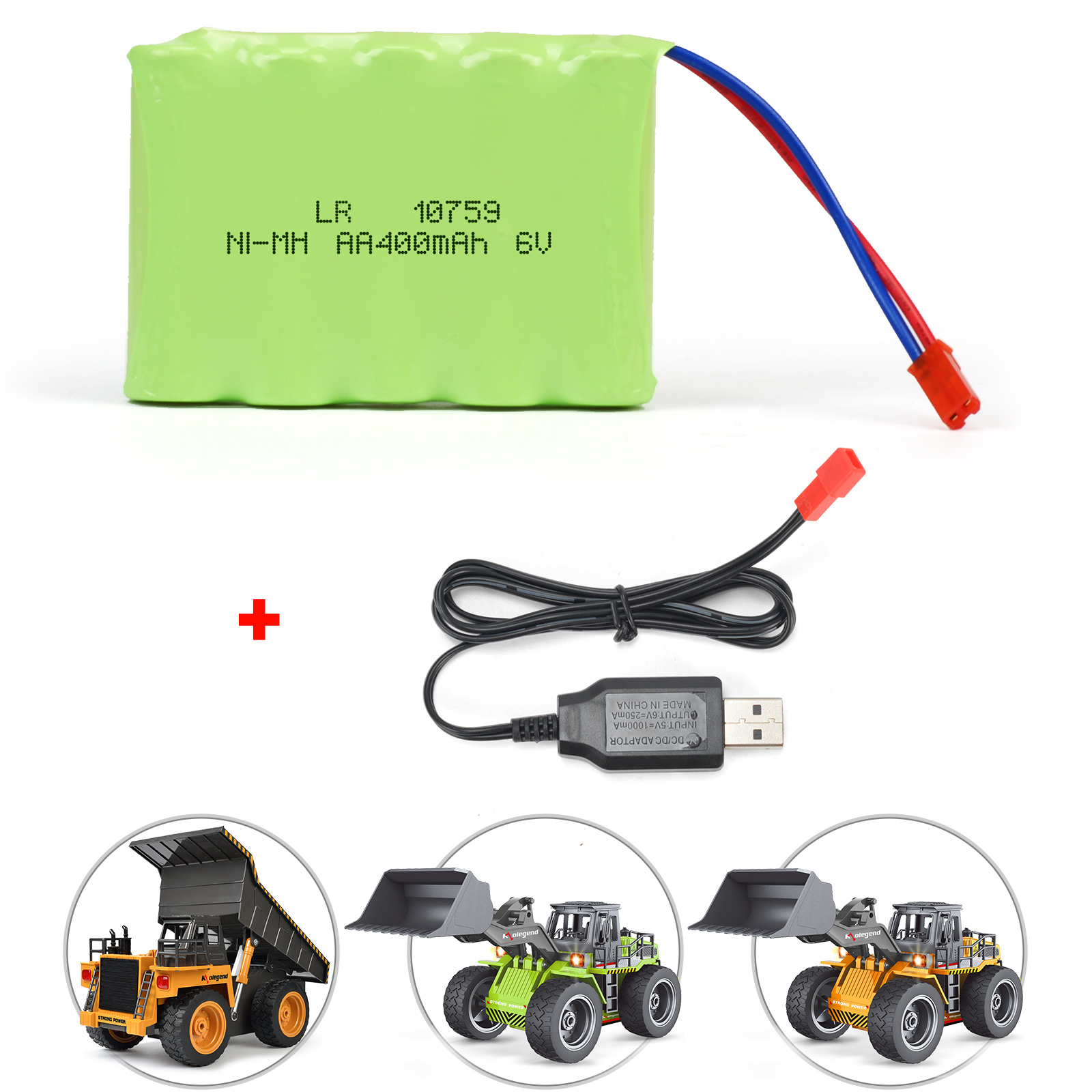 kolegend 6V 400Mah NiMH Rechargeable Battery with USB Charger Cable for 1540 and1520 Construction Vehicle