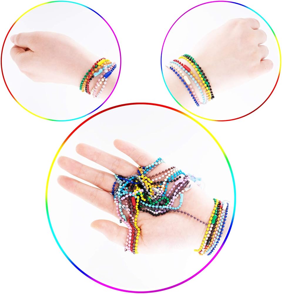 [Package Contents] 100pcs random color ball bead chains wrapped in a transparent box. Each ball chain comes with a connector clasp.