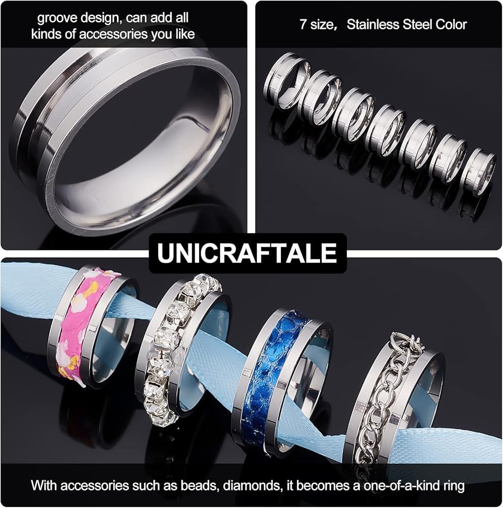 Convenient to Use: These grooved blank rings are very convenient to use, you may use with gems, crushed opal, meteorite, crystal, wood and other inlay materials to DIY a unique finger ring.