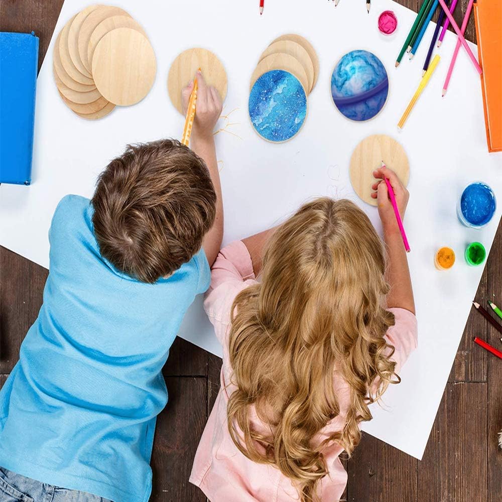 The unfinished wood circles can be used for DIY coasters, art classes, parties, home decoration, photo props, wedding decoration, Christmas decoration, pyrography, painting, carving and other handicraft projects.