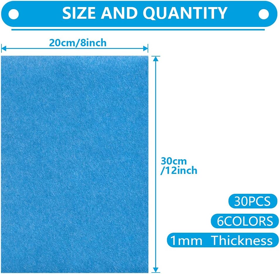 HellooColor 6x5 Pcs Felt Fabric Sheet 8x12 inches Blue Series Craft Squares Nonwoven 1mm Thick