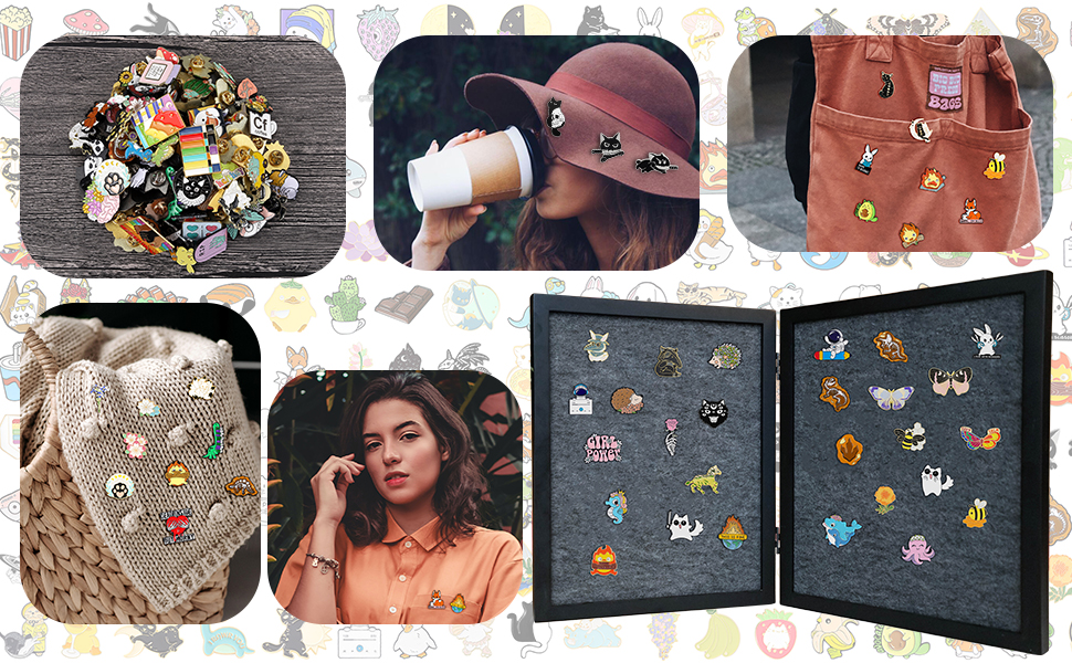 Widespread Use: Whether used by adults or children, bulk enamel pins match your outfit. It can suitable for coat, sweater, backpack, jeans and so on. Each one has a different style that is very creative and stylish. Wear it that can make you the focus of any occasion such as photography, outings, travel, school and work in general.