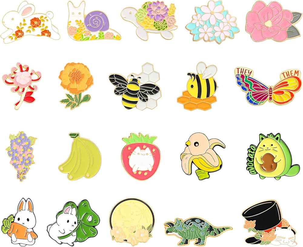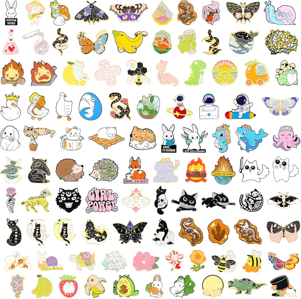 Package Content: The package comes with 30 pieces of enamel pins, which feature elements of cute animals,novelty plant,cartoon food,punk decoration,funny words,and so on.4 types of lapel pins are randomly distributed, and each one can bring you surprises. These interesting and creative aesthetic pins can bring you different visual experiences and make you look fashionable.