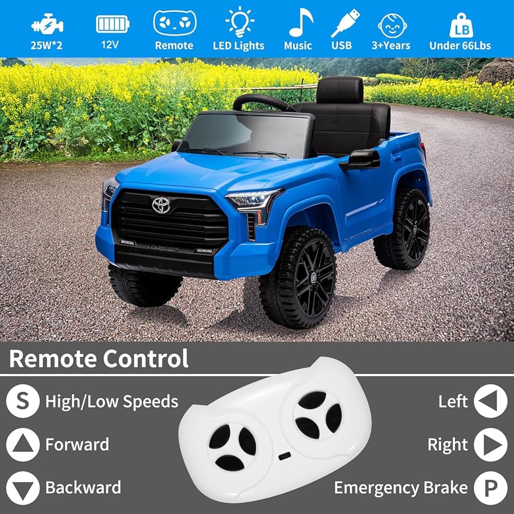 Ride on Truck Car, 12V Licensed Toyota Tundra Ride on Car w/Remote Control, Battery Powered Electric Car with4 Wheels Spring Suspension, 3 Speeds, LED Lights, Gift for 3+ Kids-Blue