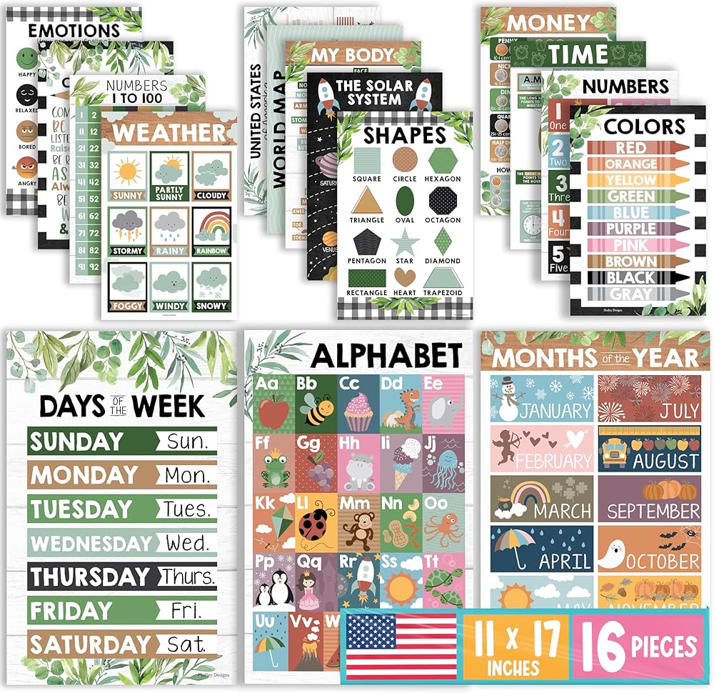Make Learning Fun; You'll receive 16 different 11x17" laminated educational posters; so your classroom will never be boring again; Get students excited to learn with these preschool learning posters/preschool educational posters for kindergarten